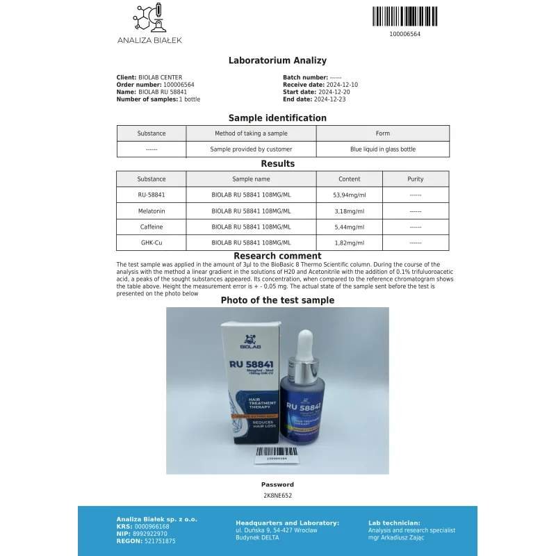 RU58841 + GHK-CU + melatonin + caffeine – none of these ingredients is inert! In addition, the whole is not mixed with DMSO, which can cause many side effects. The composition of the product is 100% well thought out and tested on many people.