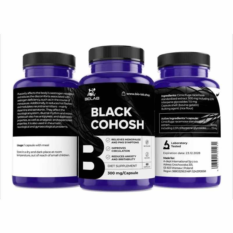 Black Cohosh is used to alleviate the discomfort associated with menopausal symptoms, which include hot flashes and excessive, profuse sweating. The first effects in relieving menopause can be observed after just two weeks of use.