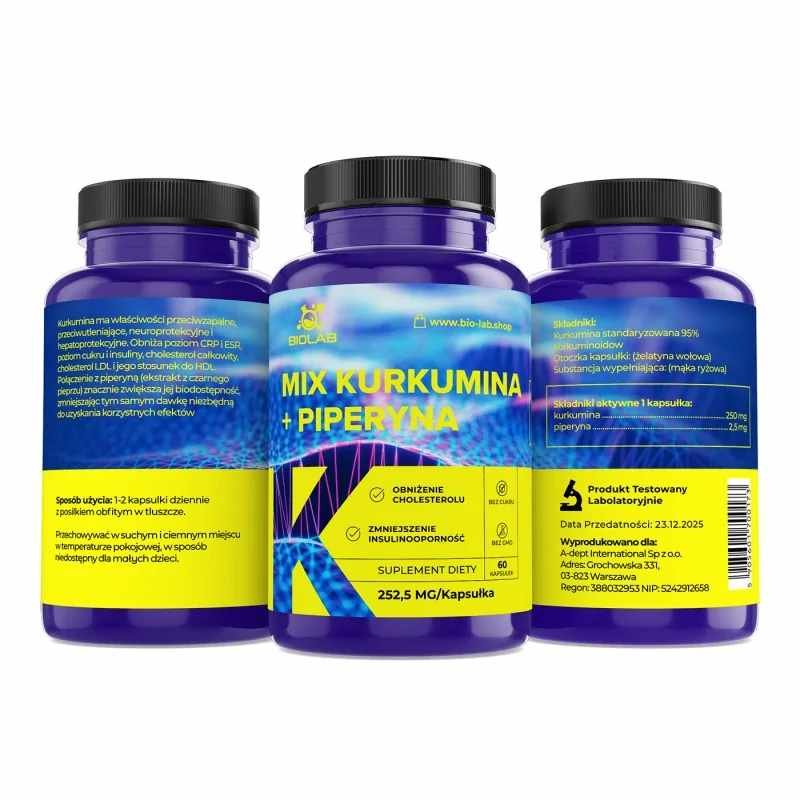 Synergy of Ingredients: The combination of curcumin and piperine is particularly effective because piperine can increase the bioavailability of curcumin, which enhances its effects. Thus, these ingredients work synergistically, making them even more effective. Curcumin and piperine are supplements that can support a healthy lifestyle. Thanks to their synergistic effect, they are an excellent choice for those who want to enrich their diet with natural ingredients.