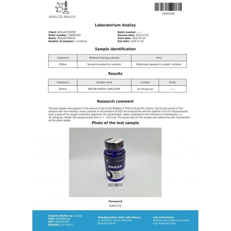 Composition: Dihexa 10 mg