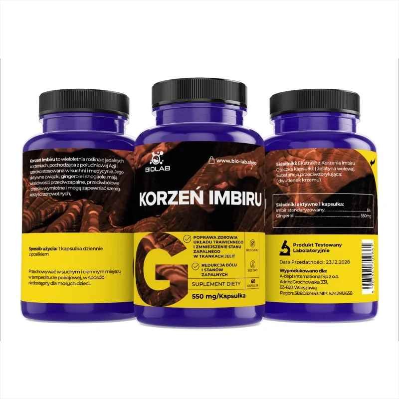 Ingredients: Standardized ginger 5% gingerol 550mg, gelatin capsule, silicon dioxide.