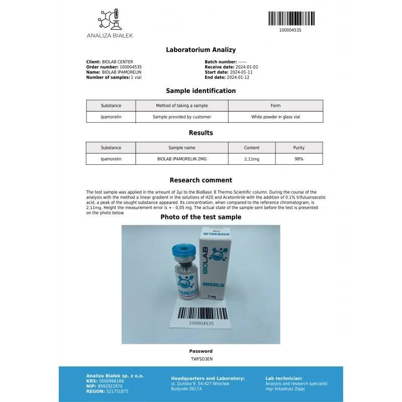 - The product (substance) is not a food or dietary supplement, not suitable for human consumption.