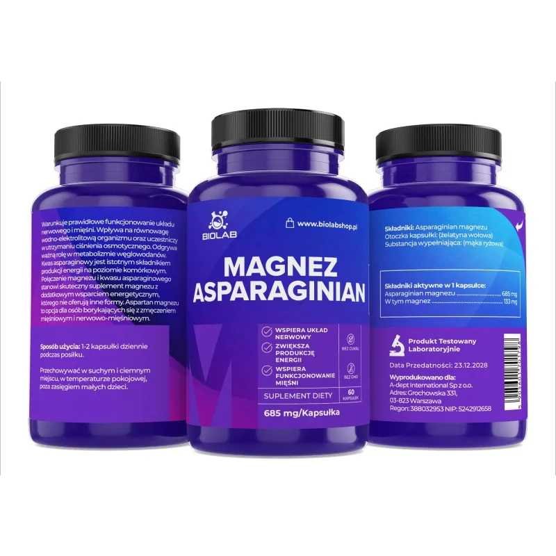 Magnesium Asparaginian is a unique supplement that combines high-quality magnesium with aspartic acid to offer a range of health benefits. It is ideal for active people, athletes and anyone looking to improve their health and well-being.