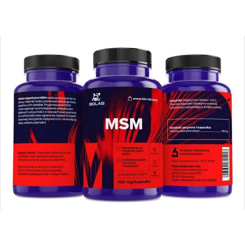 Its invaluable properties are most used by those struggling with osteoarthritis or tendon disease, musculoskeletal pain or skin/epidermal trauma. It is effective against stretch marks and improves skin tone – it has a firming effect. Using the product pre-workout can reduce muscle discomfort and delay the feeling of fatigue. MSM inhibits the breakdown of cartilage tissue.