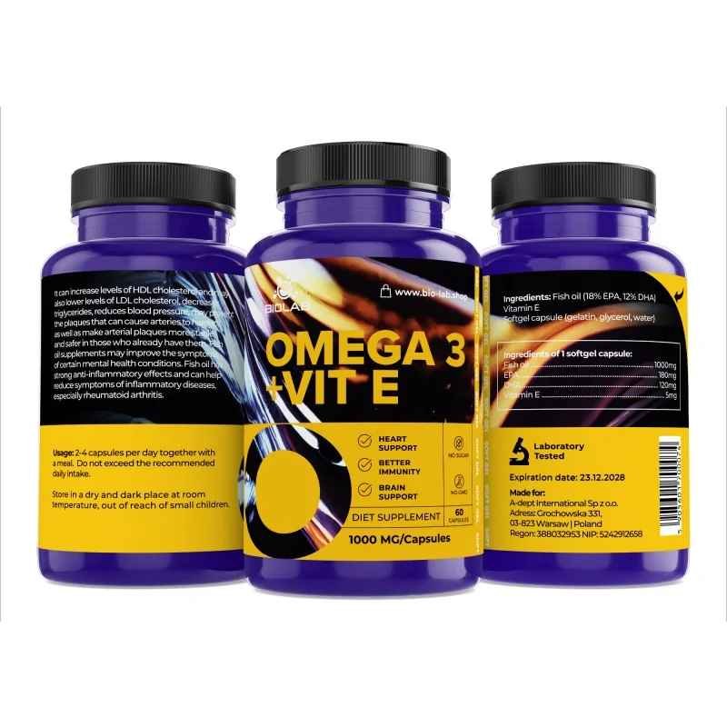 Omega 3 + Vitamin E 1000mg/capsule, 60 capsules, EPA 180 mg + DHA 120 mg