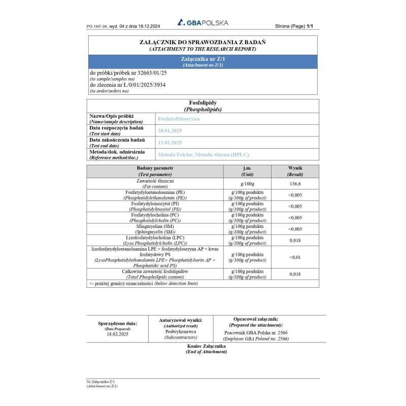Phosphatidylserine is a key component of the phospholipid membranes of the body’s cells, particularly concentrated in brain tissue. As a natural component of neuronal structures, it plays a fundamental role in signal transmission processes, supporting homeostasis and proper functioning of the nervous system.