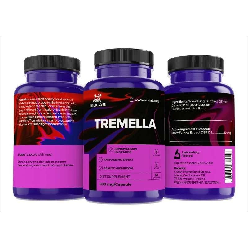 Tremella is the so-called beauty mushroom. Tremella fuciformis, or scrapie, is a characteristic white fungus, rich in vitamin D, antioxidants and anti-inflammatory agents, polysaccharides and glucans, as well as dietary fibre and collagen. Due to its antioxidant and hydrating properties, Tremella has become a sensation among products for improving skin quality.